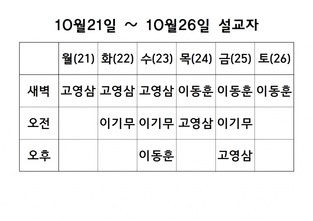 553 [집회설교자]2025년 9월29일 ~ 2025년 10월4일 설교자명단  이지현 2025-09-26 163